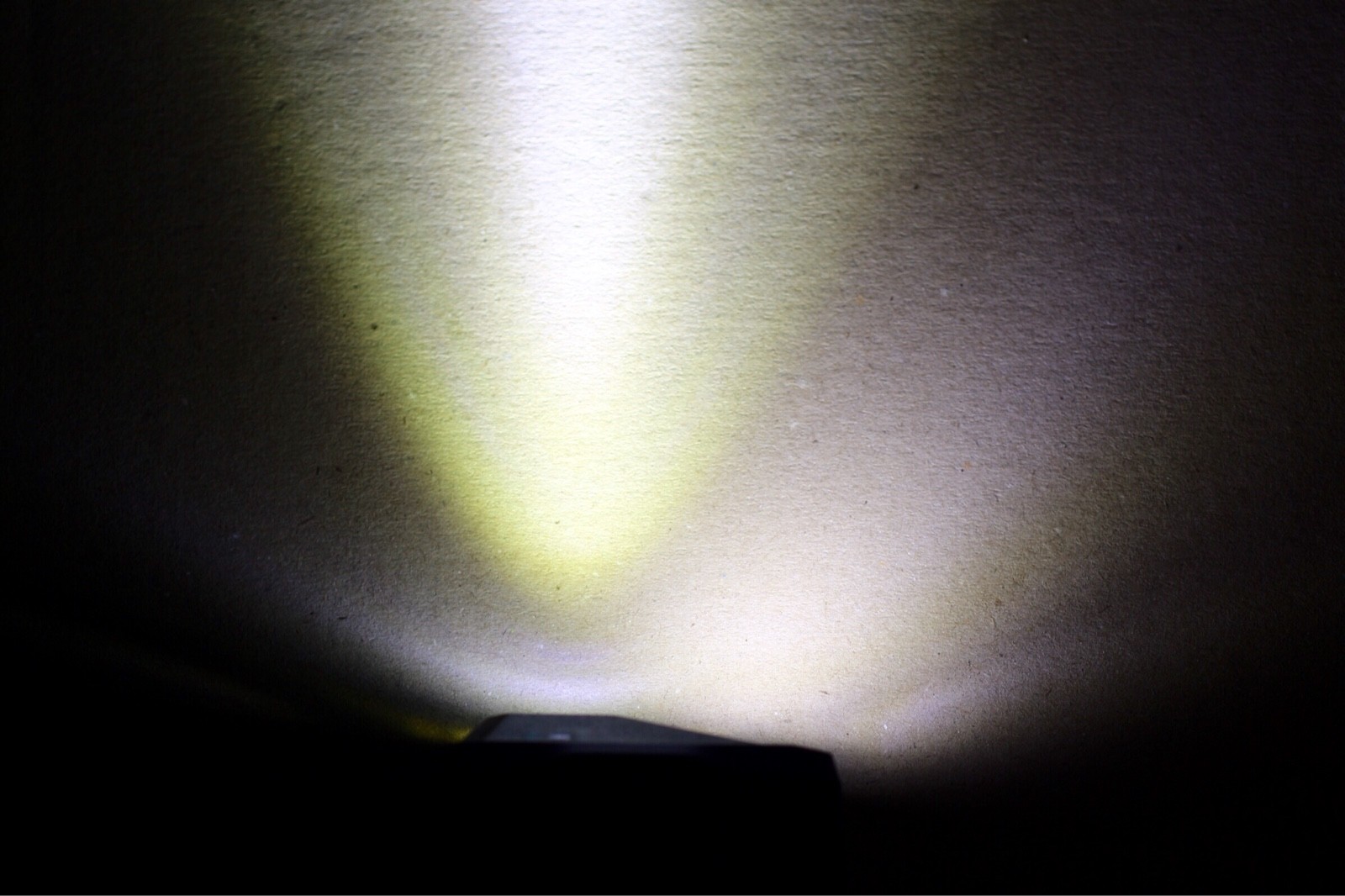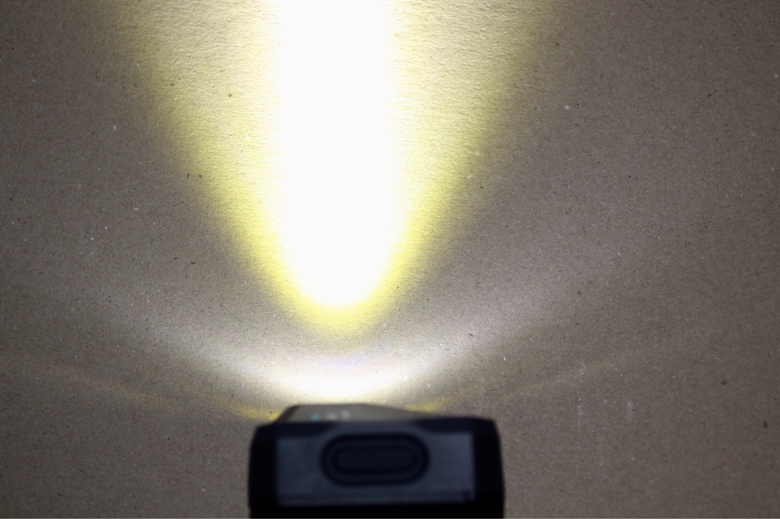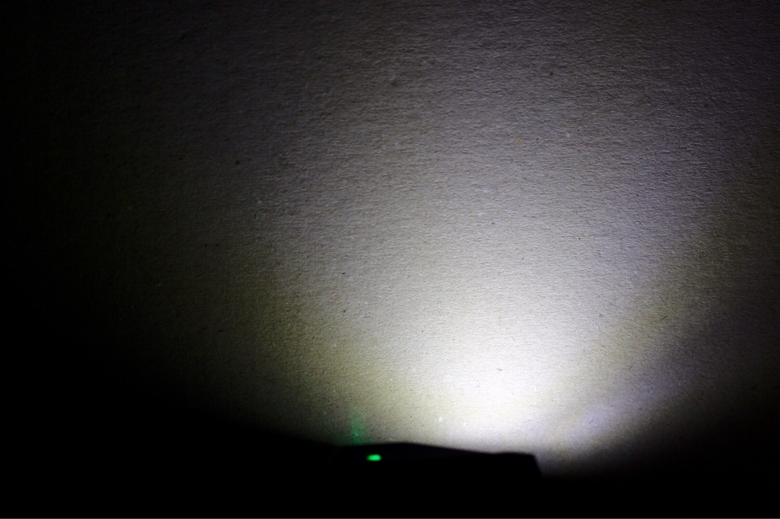 まず、メインのLEDでの照射。スポット光で遠くを照らしたいときに使う。 若干、黄色がかった色合いのLEDが使われている。