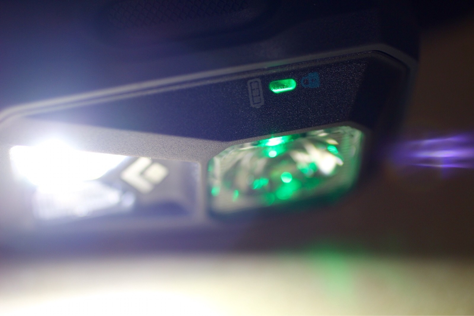 山小屋内や、星空撮影などで重宝する赤色LED。こちらもワイドレンジ仕様のLED。なお、バッテリー残量を除く3つのLEDがそれぞれディグミング対応なので、自分の好みの明るさに調光できる。 また、本体右側に備えられている「パワータップ」を使うと、一気に最高照度に切り替えられる。