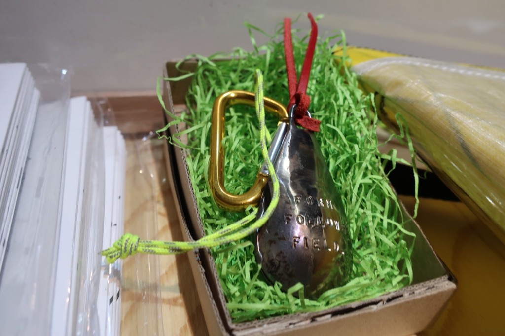 そして、off the grid で買えなかったベアベルもサンプルが展示されていた。残念ながら在庫なしで今回も購入は出来なかった。もっとも、5月下旬以降頃には再販売の目処が立ちそうとのこと。また、次の機会に購入を目論もう。サンプルを手に取った感じは、まず「軽い」という印象で重さは感じなかった。音も大きすぎず小さ過ぎず、ちょうど良さそうな感じに造られていた。また、おそらく、鍋なんかと同じように、ひとつひとつ板状の素材から打ち出しているんだと思われる凹みが確認できた。手打ちか機械打ちかは不明だが手間が掛かっていることは確かだ。ますます欲しくなった。