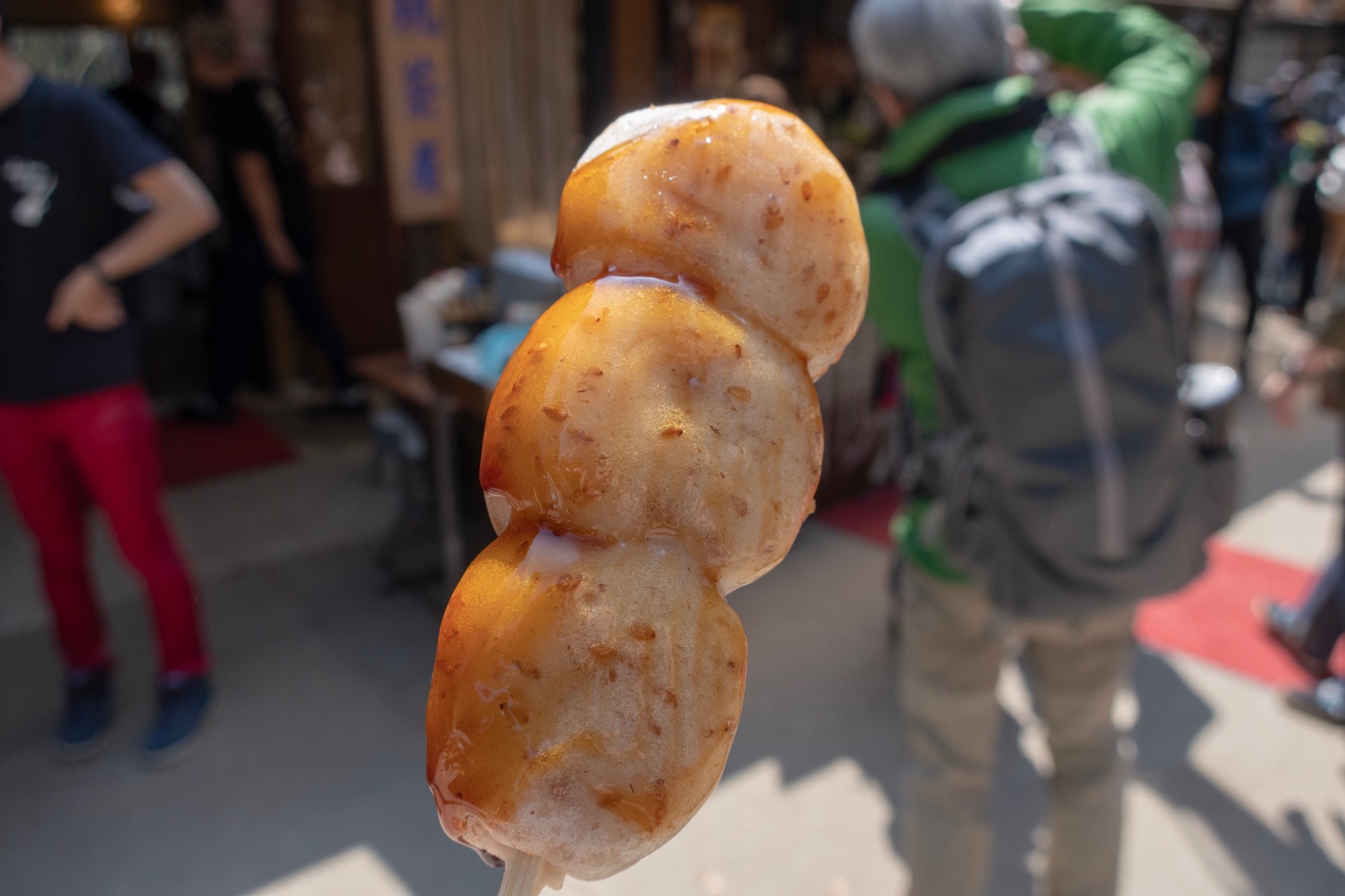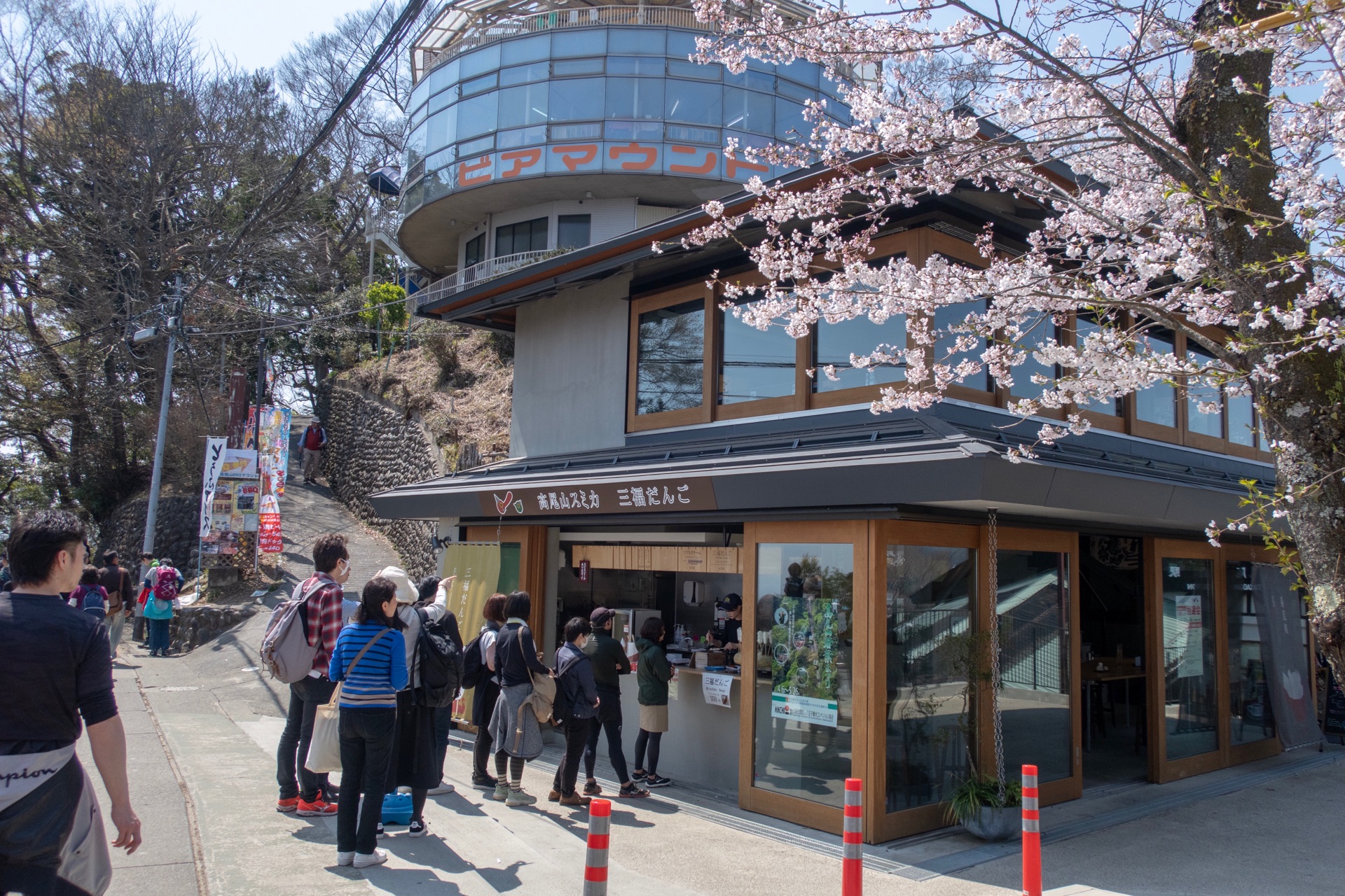 ケーブルカーから降りると、天狗のお菓子が売ってます。いつも並んでる。