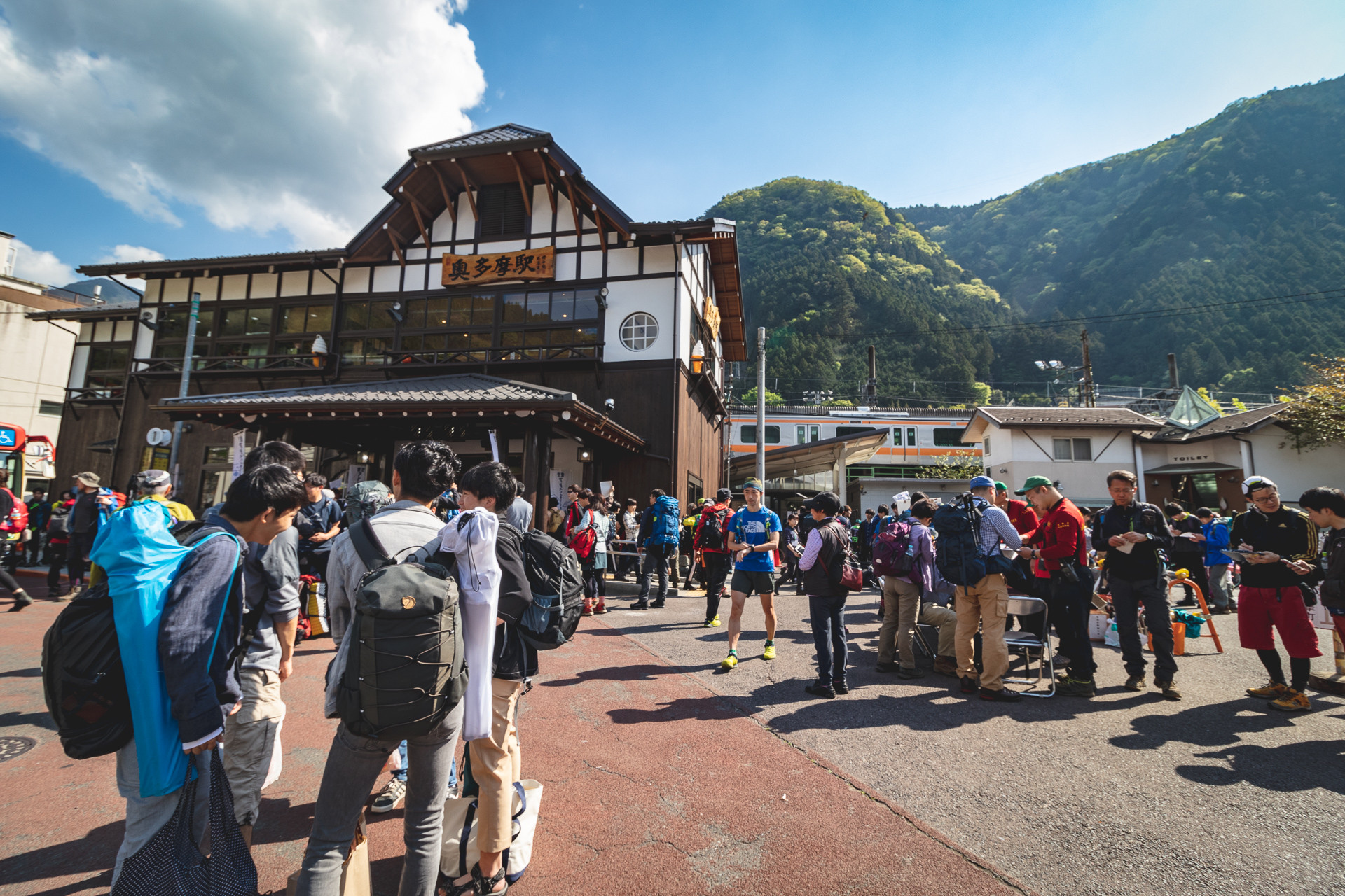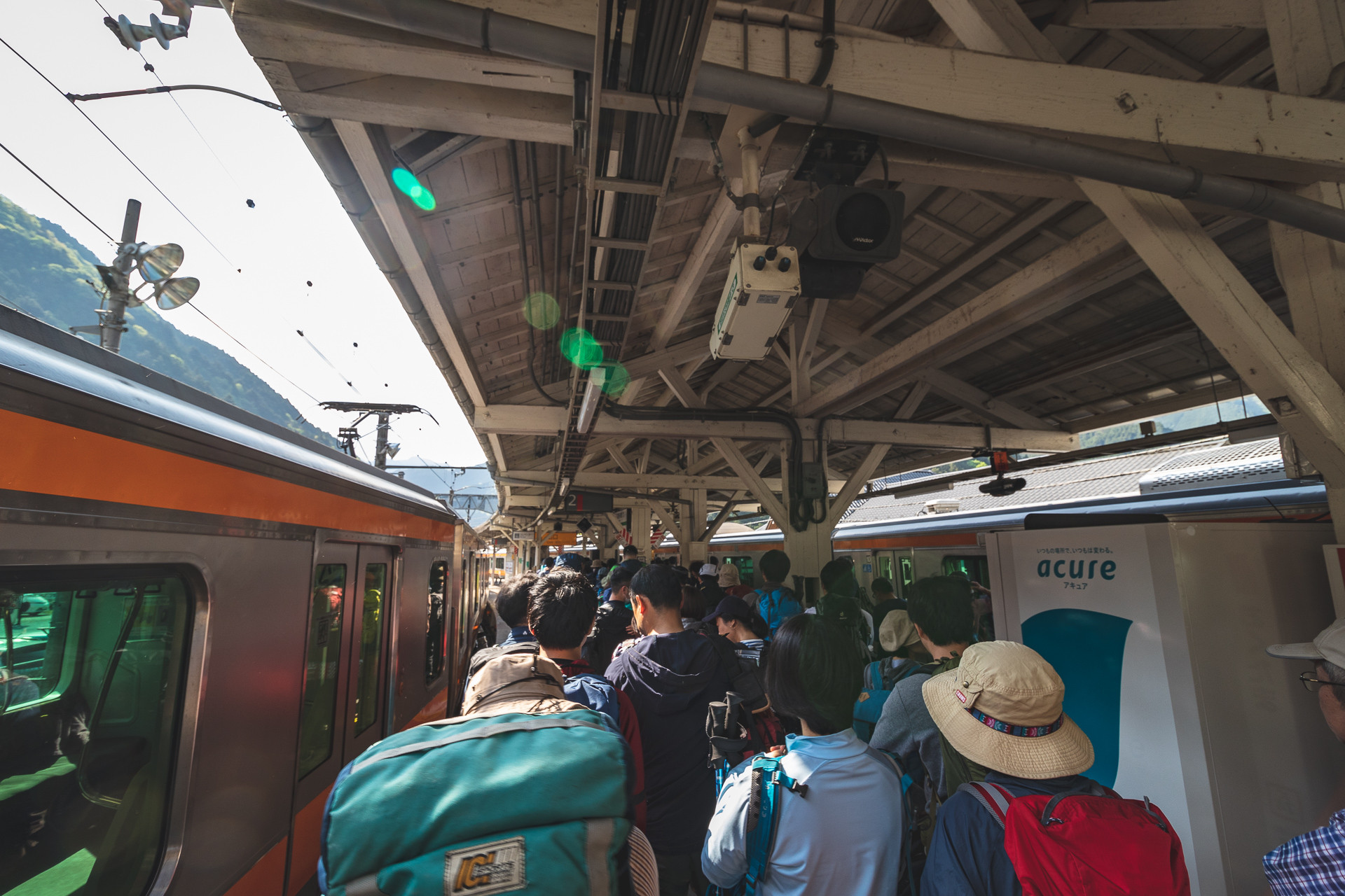 奥多摩駅へ着くと、一気にホームへ乗客たちが雪崩れ込む。なかなか、駅から出られないほど人が多い。