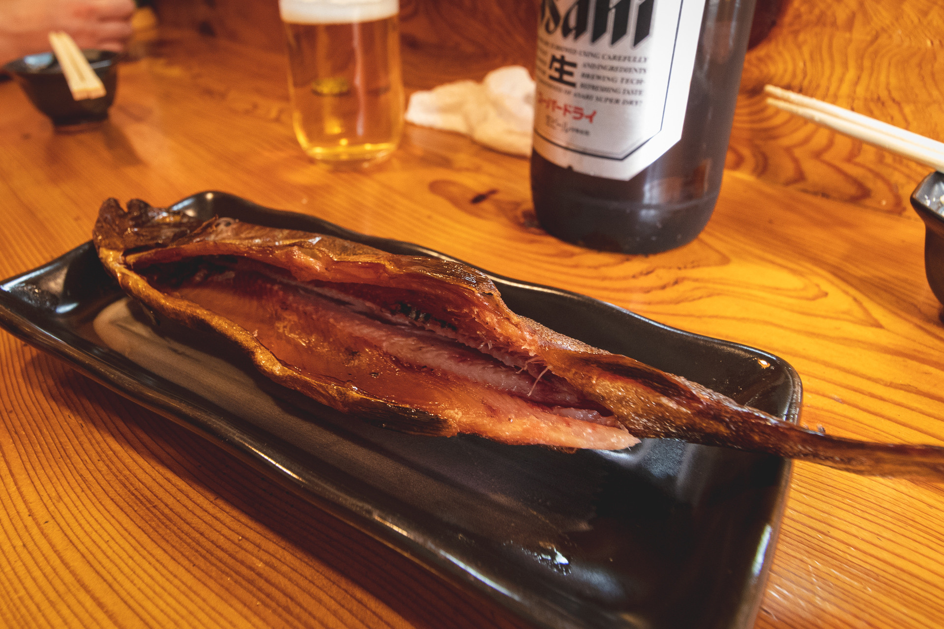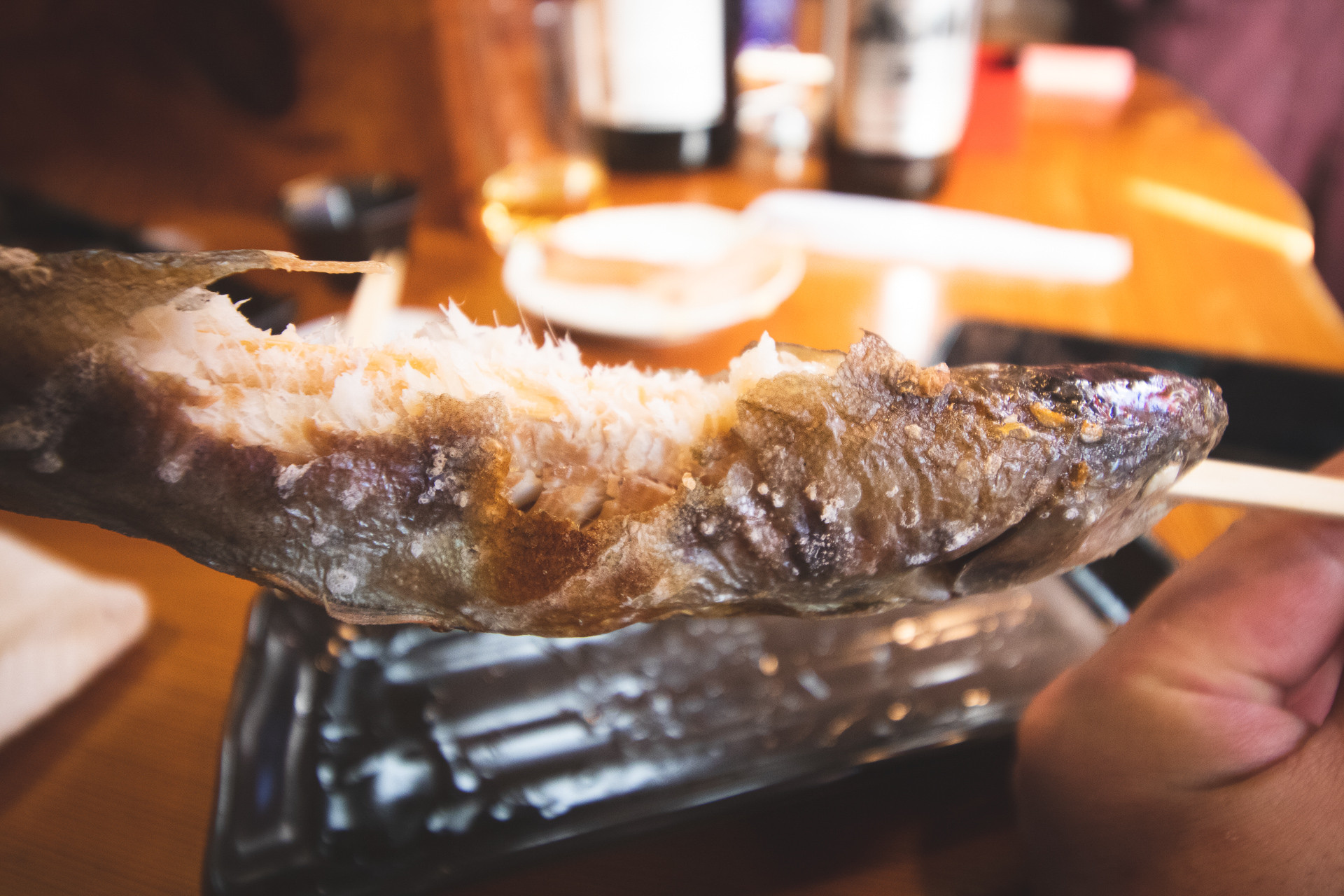 そして、お店の常連さんで週7できてるって言ってたおじさんに、駅前で売ってた鮎の塩焼きをご馳走になりました。これまたうまかった。