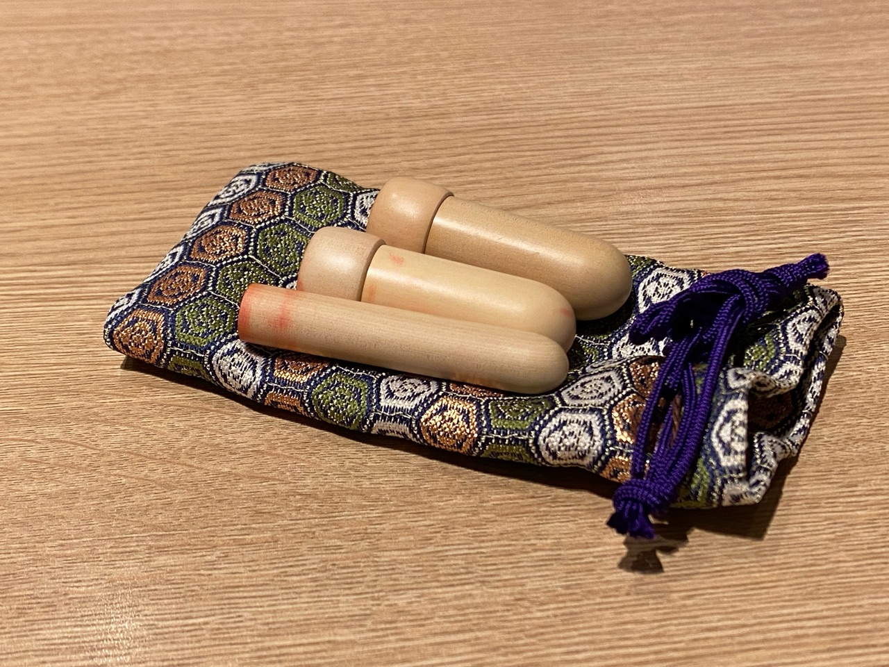 3ヶ月後。なんの予約等なくお昼過ぎにお伺いしました。扉を開けて入ると、ご年配の女性がおひとりでいらっしゃいました。おそらく、桃仙さんの奥様だと思います。名前を告げて、紙袋に入ったハンコを受け取ります。表には作っていただいたハンコの陰影が3つ。こんなハンコが出来上がってくるとは思っていませんでした。文字(フォント)が独特なんです。硬い私の苗字がなんとも柔らかく見えます。ほんと素晴らしい。