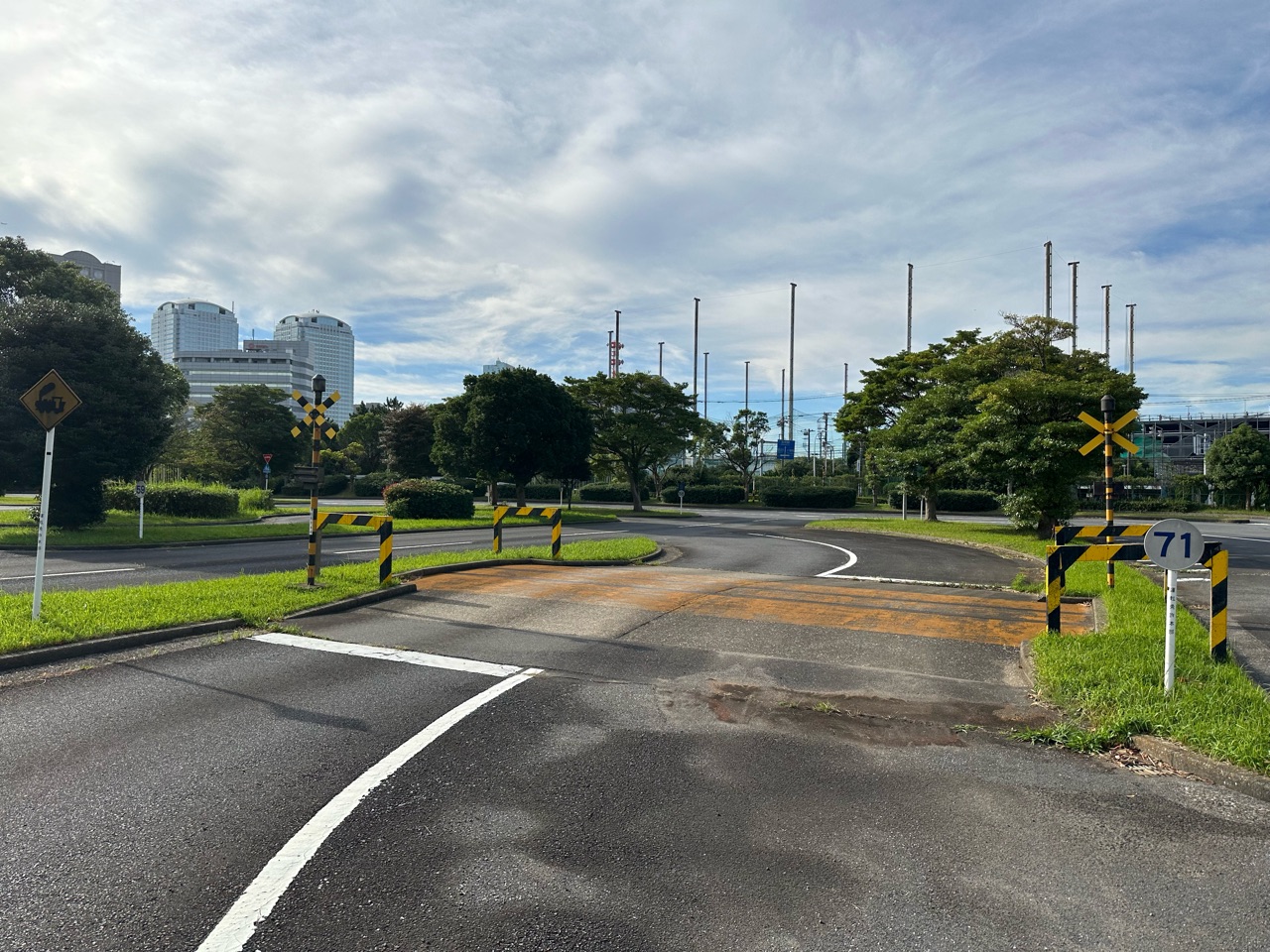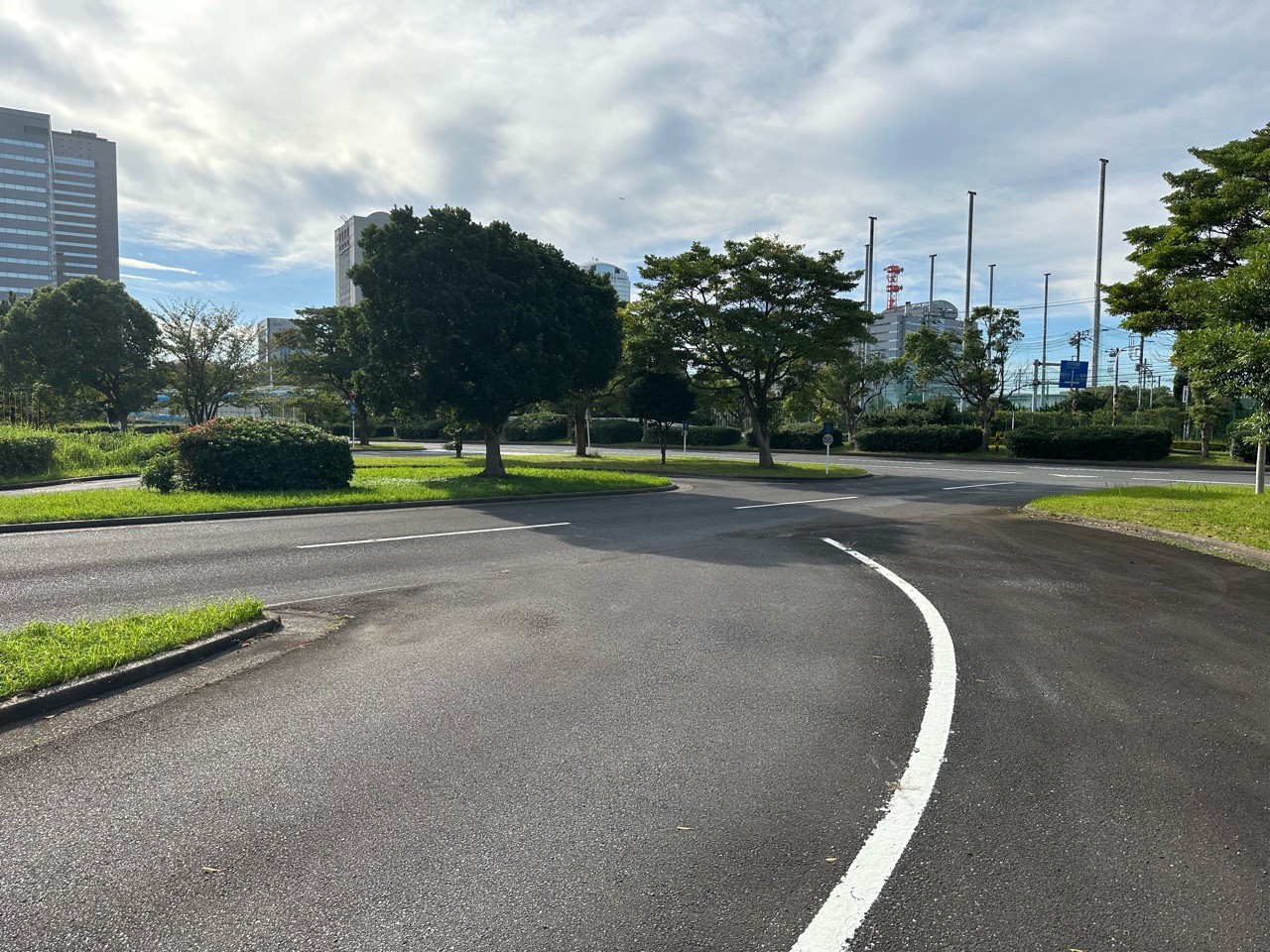いつも減点超過で右に曲がるように言われる「踏切のあとの左折箇所」。この日は、「そこを左折してください」と。このときも大回りを取られないようにしっかりと水切りに乗せて曲がりました。直線20キロ区間、これが意外とスピードが出ないんです。結構踏み込んでやっと20キロ出ました。その先の左折箇所、曲がった先の交差点左折、最後の右折、道路上の障害物、しっかりと寄せつつ、安全確認を行い、発着場へ戻ってきました。最後までパケットを1番の標識に合わせて下ろします。