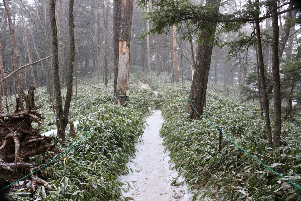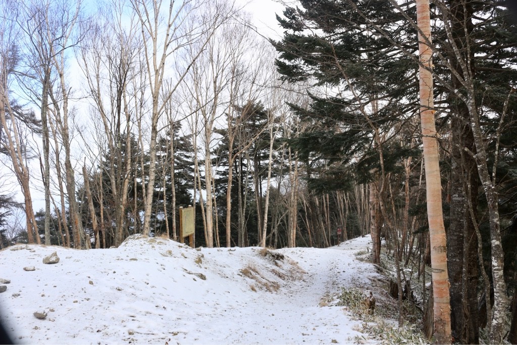 山頂から少し下ると「あれっ。雪がけっこうあるじゃん」