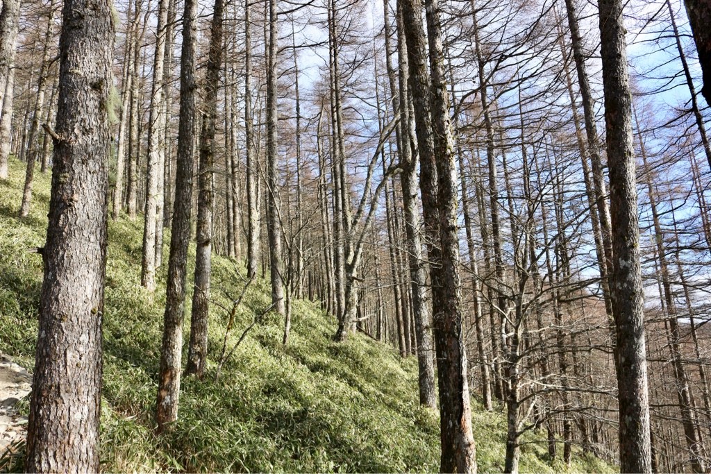 三峯神社の奥宮あたりをすぎた所の木々は、とても綺麗だ