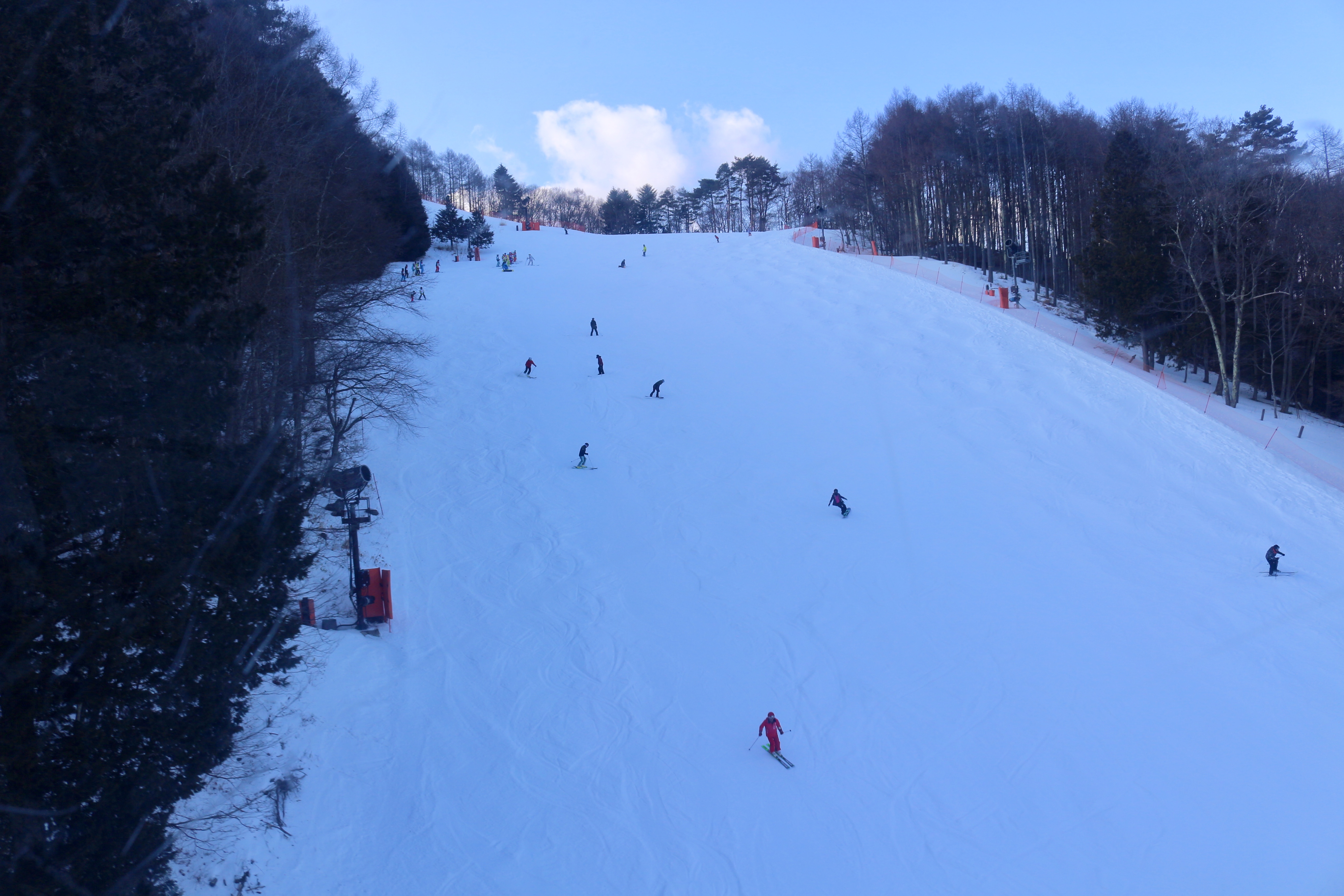 下を見るとゲレンデを滑走するスキーヤーたちの姿が。