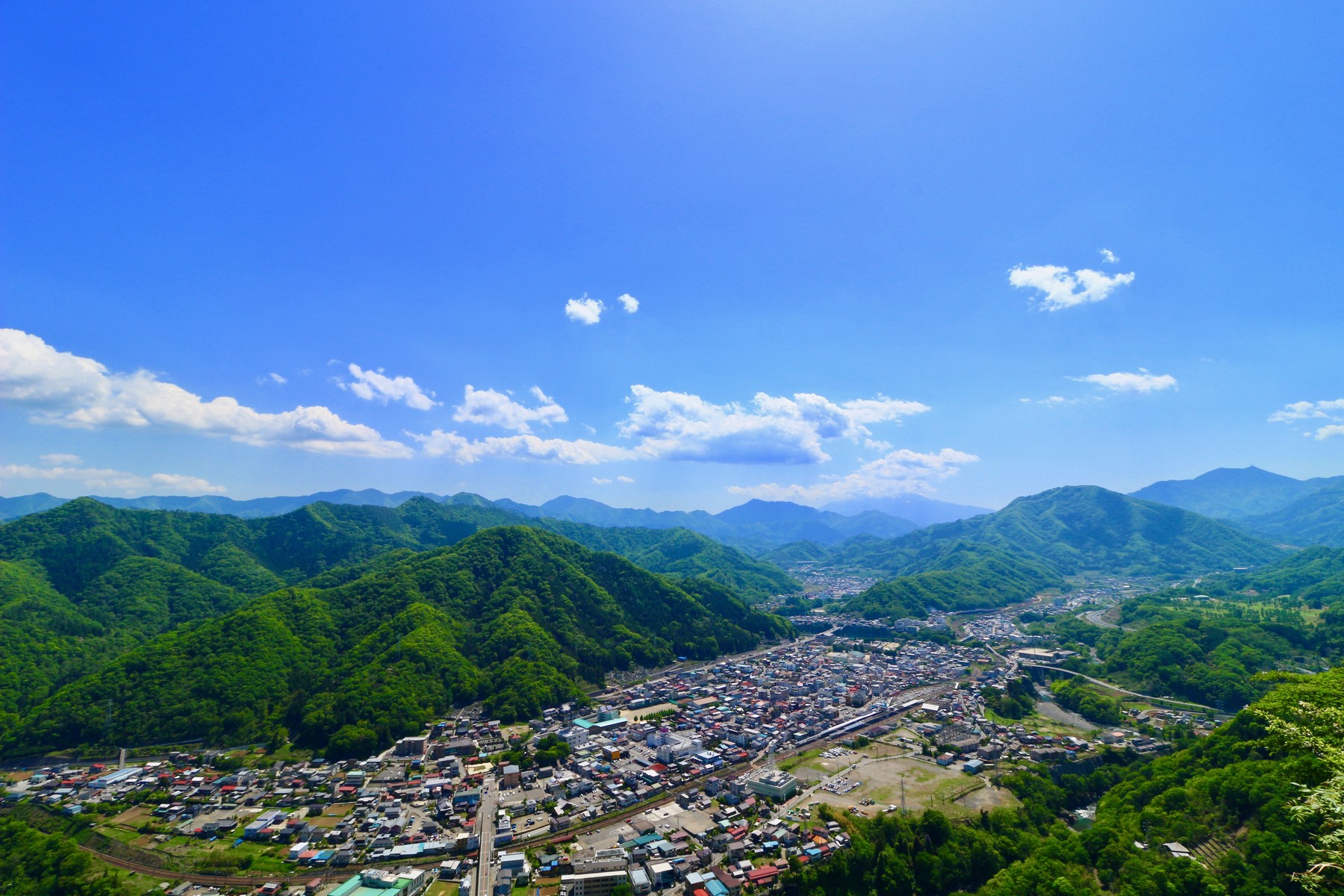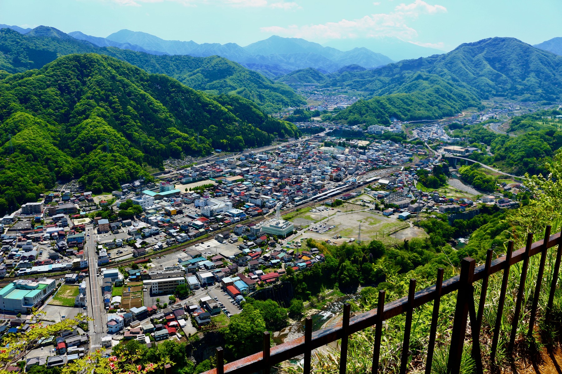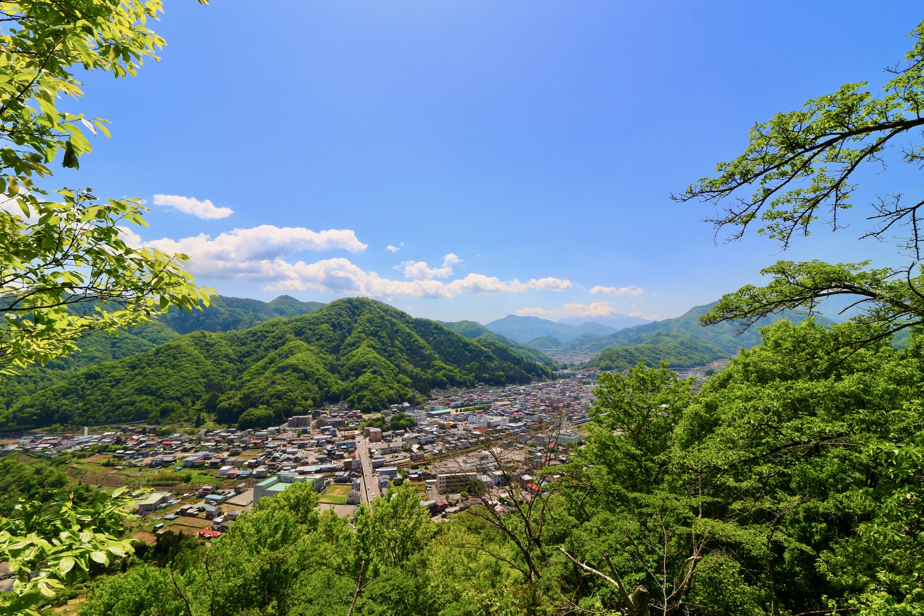 岩殿山の山頂から見下ろす大月の街はきれいでした。