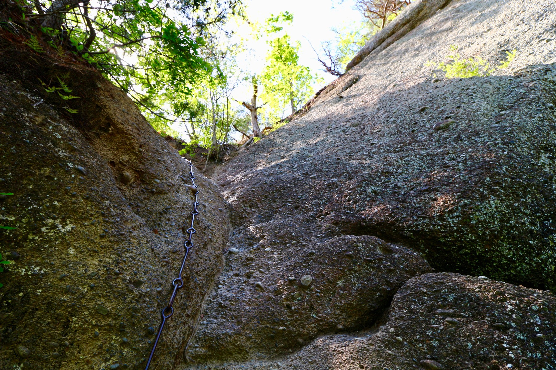トラバースし終えてからの鎖場。垂直に5Mほど登ります。