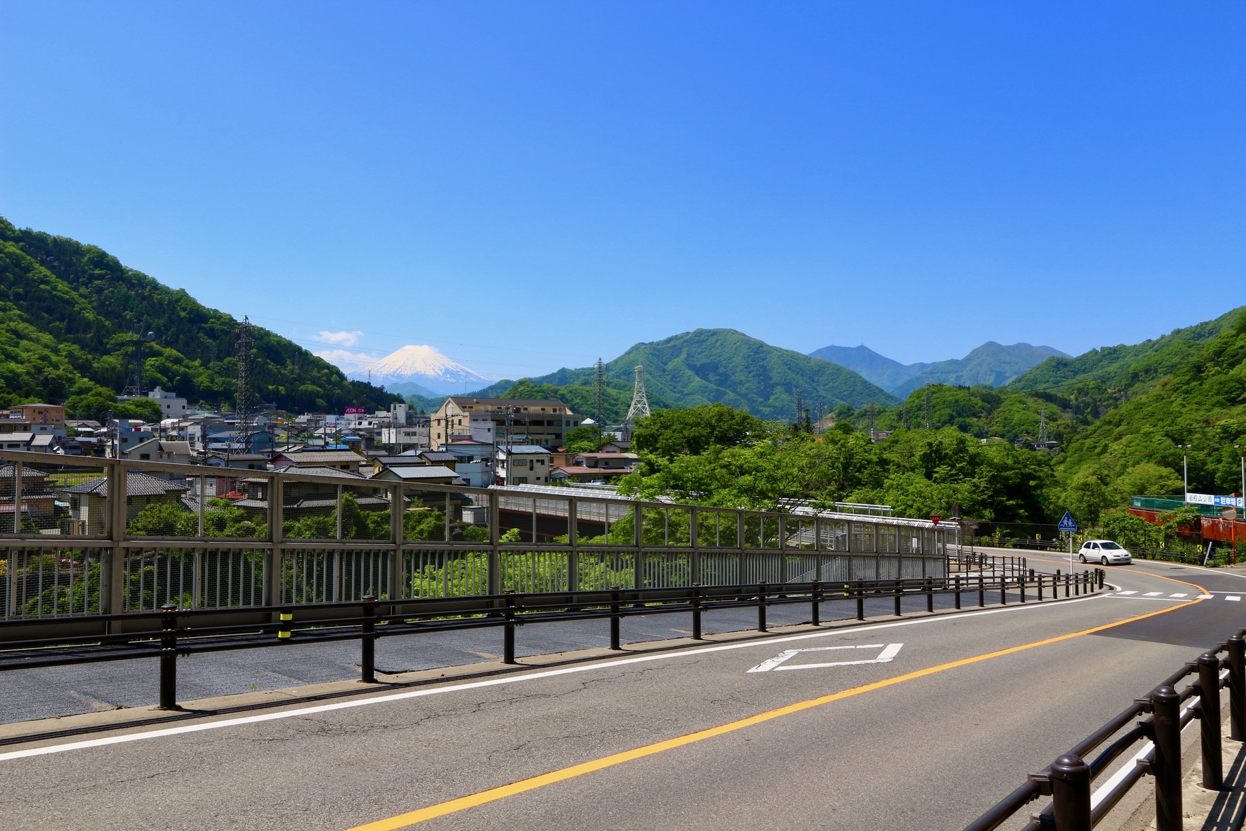 大空と富士山と大月の街がバッチリ写真に収まった。
