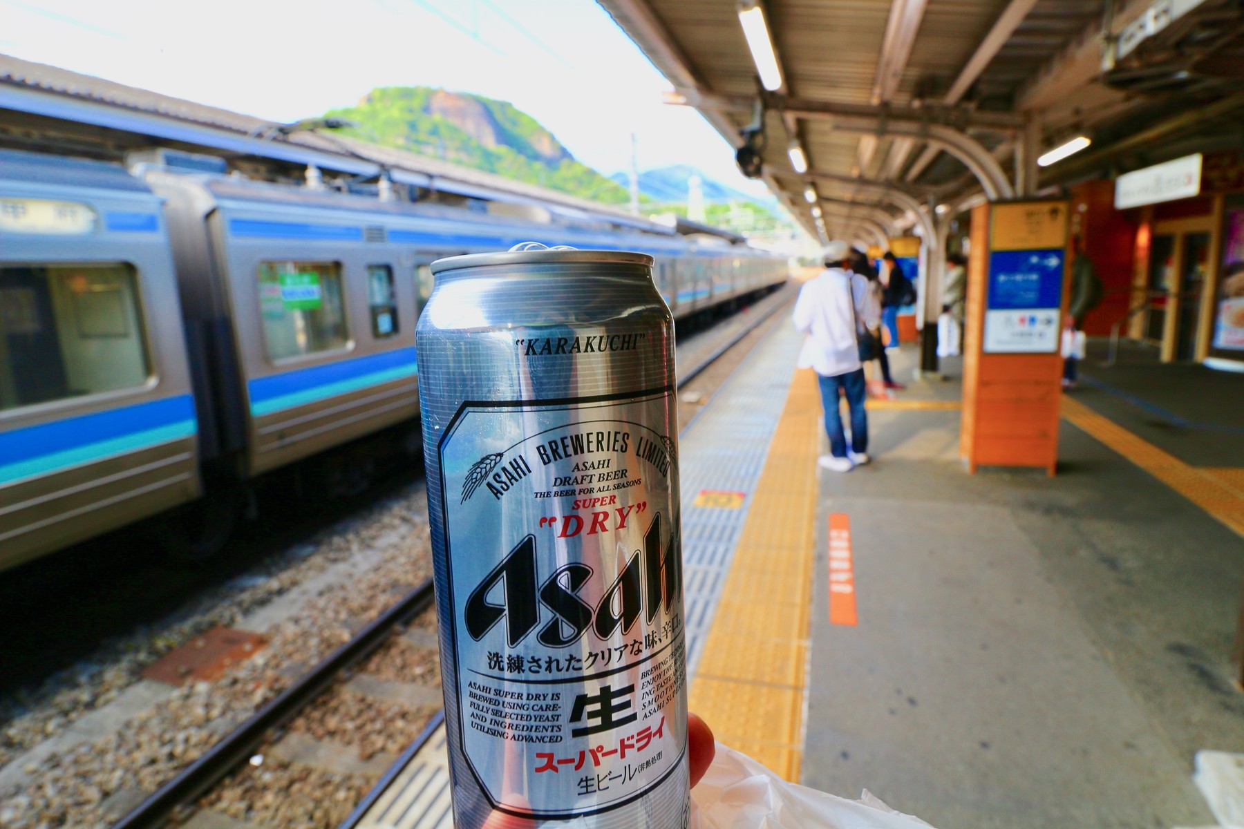 この日は、暑いから駅で缶ビール買ってプシュ~
