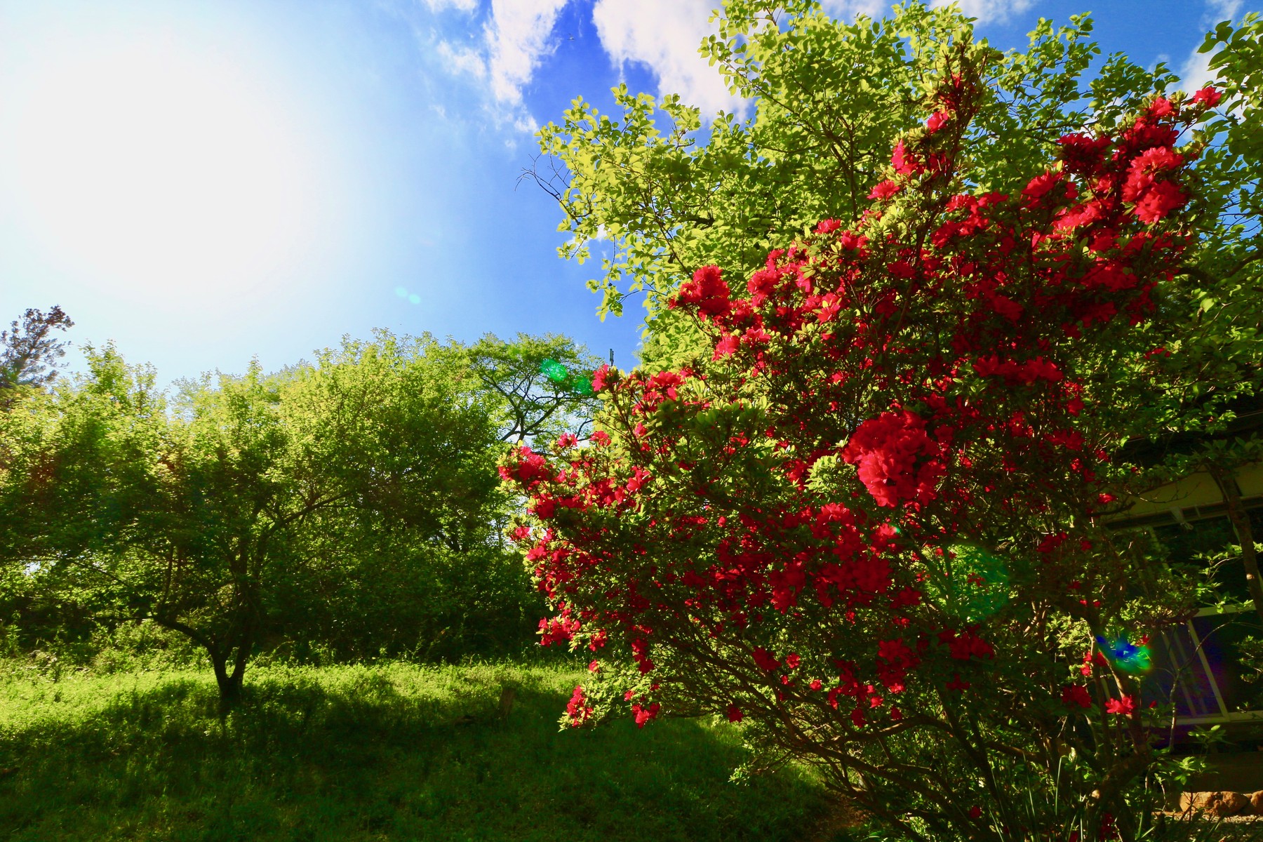 民家の庭先に咲いているツツジがなんとも綺麗なこと。
