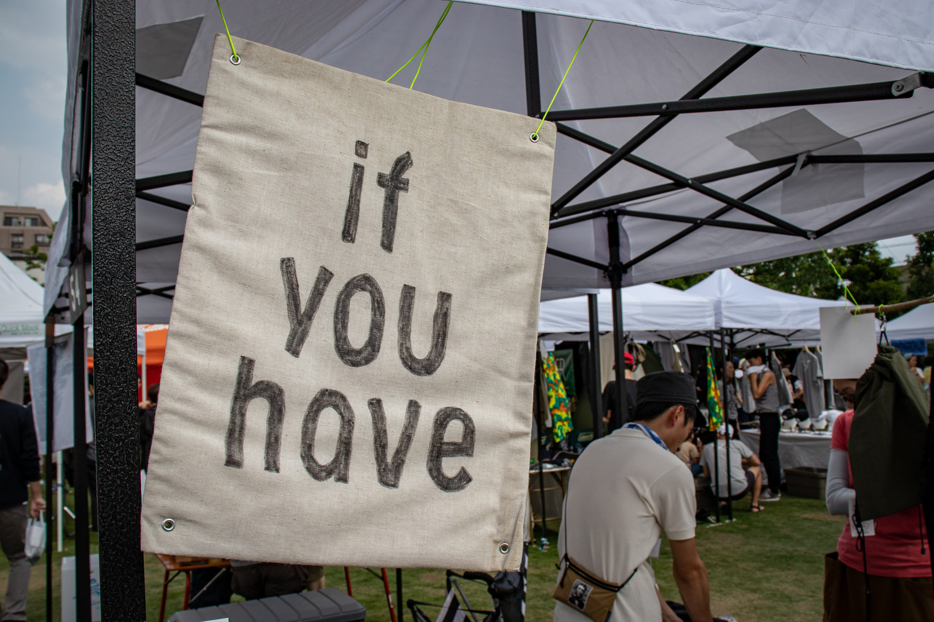 つまり、プリントをお金で評価するシステムです。私はこういうのがすごく苦手なんです。相場が分からずいったい幾らが良いのか検討がつかないので、つい高額をつけてしまうタイプです。少額をつけると失礼かもしれないし提供者もいい顔はしないでしょう。つまり、自然と儲かる仕組みになってるのがちょっと嫌です。会話のなかで「大体、皆さん〇〇くらいつけて頂けます」とか言ってくれればまだいいですが、まったく丸投げされると困ってしまう。ちなみに、私の前で買っていた人はTシャツ代金とプリント代で5000円払っていました。こういう販売方法だと気持ちよく買い物できないなぁ。